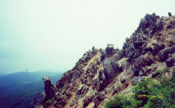 ビールを飲み、バナナを一本食べて三国山へ向かう。途中、明王の禿と呼ばれるすごい岩