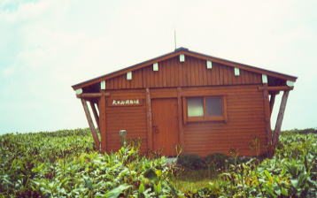 の避難小屋に到着。入り口の前にまむしがとぐろをまいていたので、ちょっと突っついてどいて貰う。